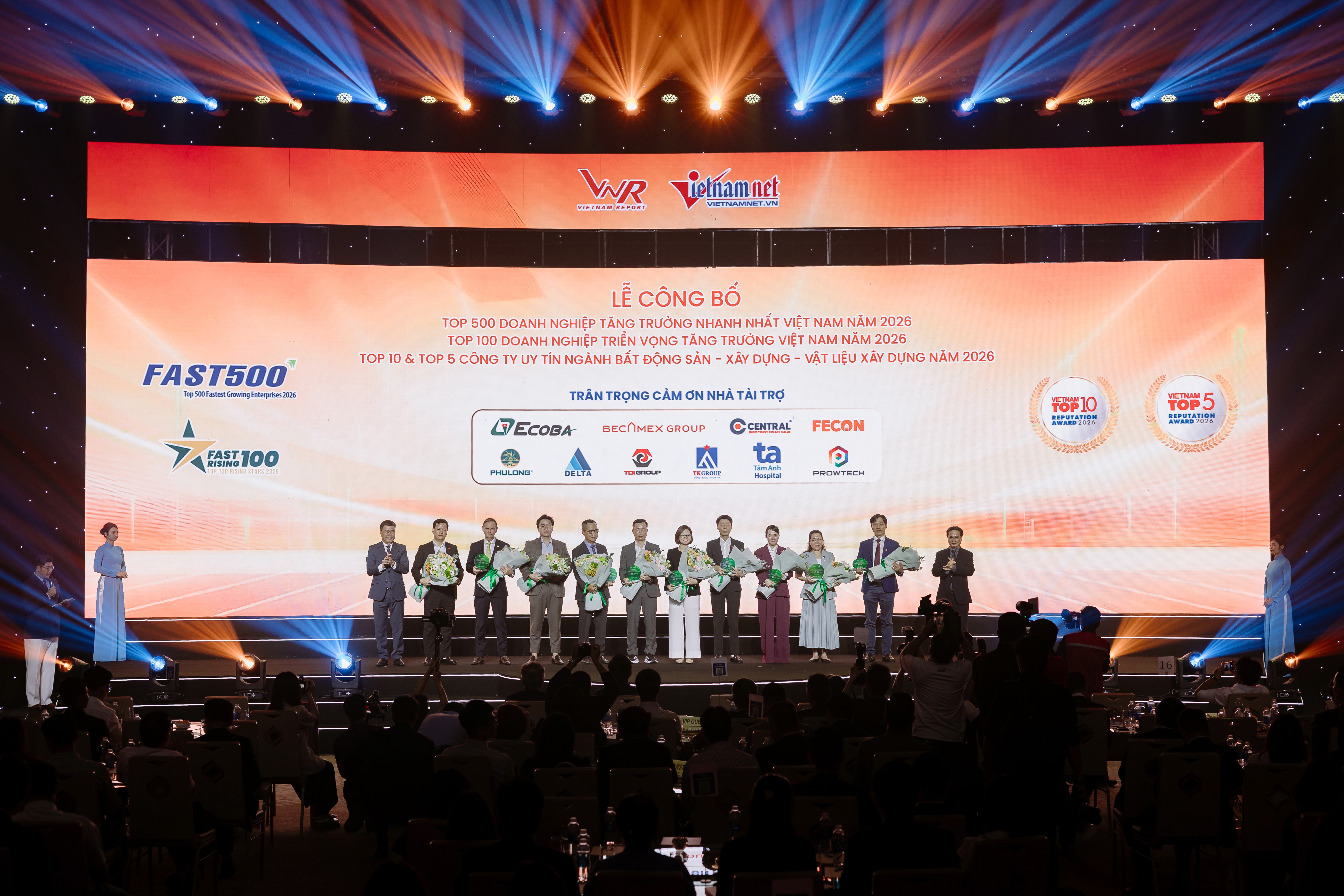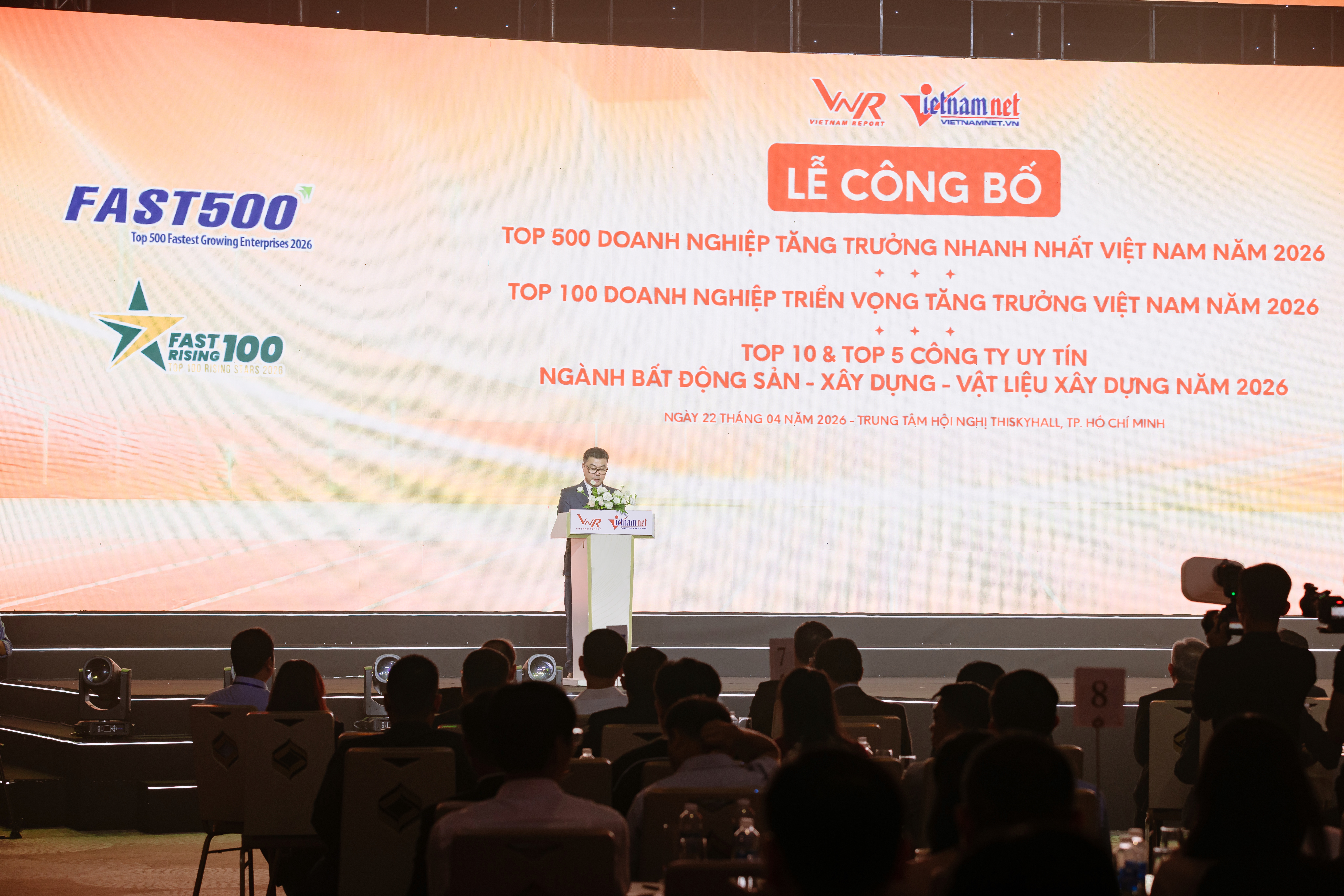 Ngày 22/04/2026 tại Trung tâm hội nghị Thiskyhall - TP. Hồ Chí Minh, Công ty CP Báo cáo Đánh giá Việt Nam (Vietnam Report) và Báo VietNamNet chính thức tổ chức Lễ công bố Top 500 Doanh nghiệp tăng trưởng nhanh nhất Việt Nam (FAST500), Top 100 Doanh nghiệp triển vọng tăng trưởng Việt Nam (FAST RISING 100), Top 10 & Top 5 Công ty uy tín ngành Bất động sản - Xây dựng - Vật liệu xây dựng năm 2026.