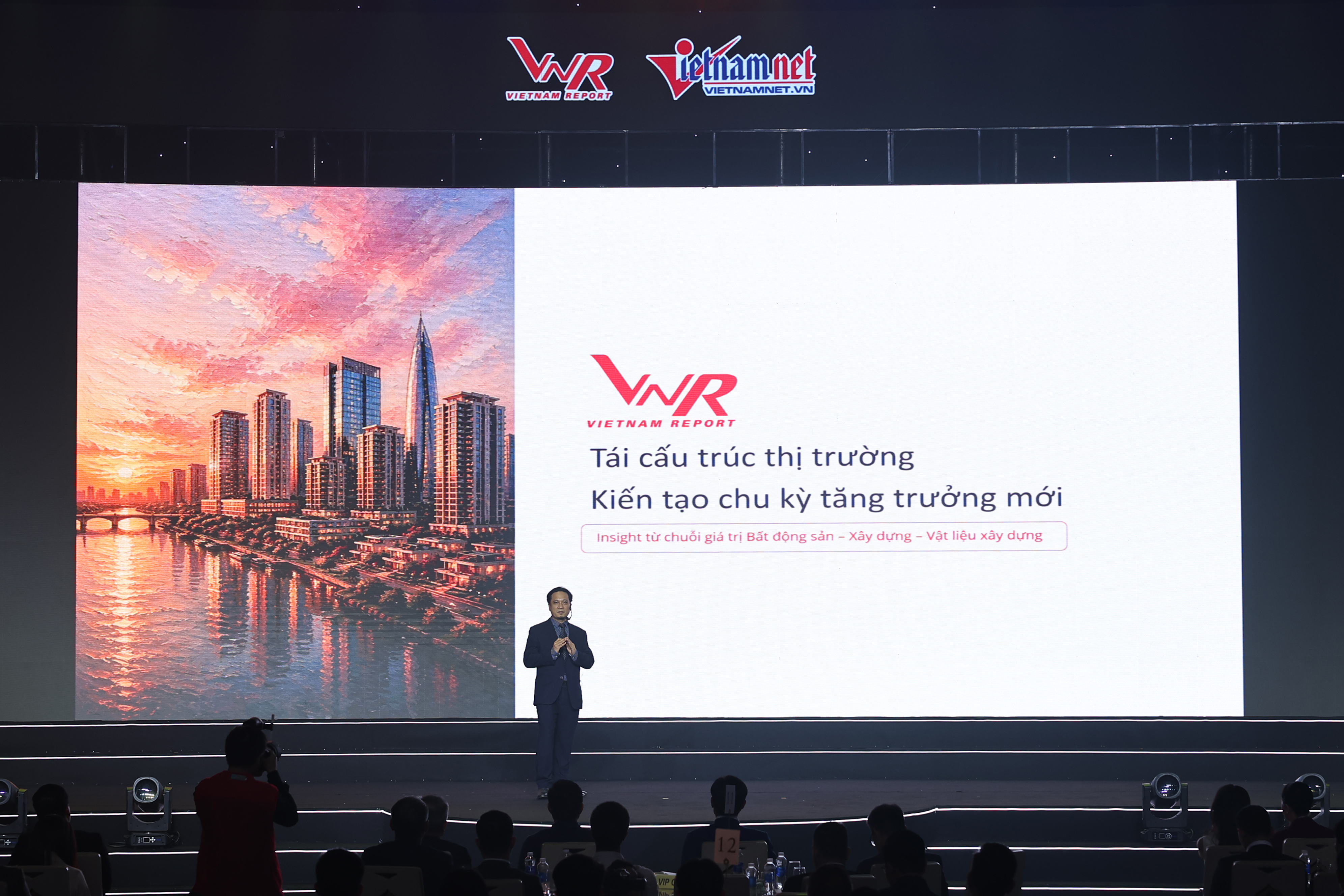Ông Vũ Đăng Vinh, Tổng Giám đốc Vietnam Report, cho rằng thị trường Bất động sản - Xây dựng - Vật liệu xây dựng đang bước vào chu kỳ tăng trưởng mới, được định hình bởi ba yếu tố cốt lõi: vốn, pháp lý và nhu cầu thực. Sự phục hồi diễn ra không đồng đều khi xây dựng và vật liệu cải thiện nguồn việc, trong khi bất động sản vẫn chịu áp lực thanh khoản do chi phí vốn cao và mặt bằng giá lớn.