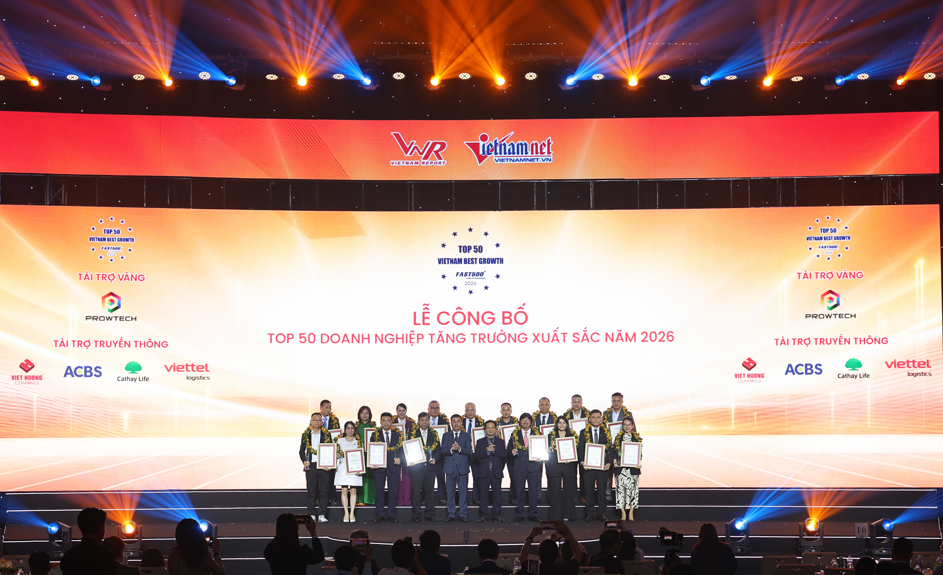 Trong đó, Top 50 Doanh nghiệp tăng trưởng xuất sắc Việt Nam năm 2026 quy tụ những đại diện tiêu biểu trong FAST500, có hiệu quả kinh doanh ổn định, tăng trưởng bền vững và đóng góp tích cực cho cộng đồng, cho xã hội.