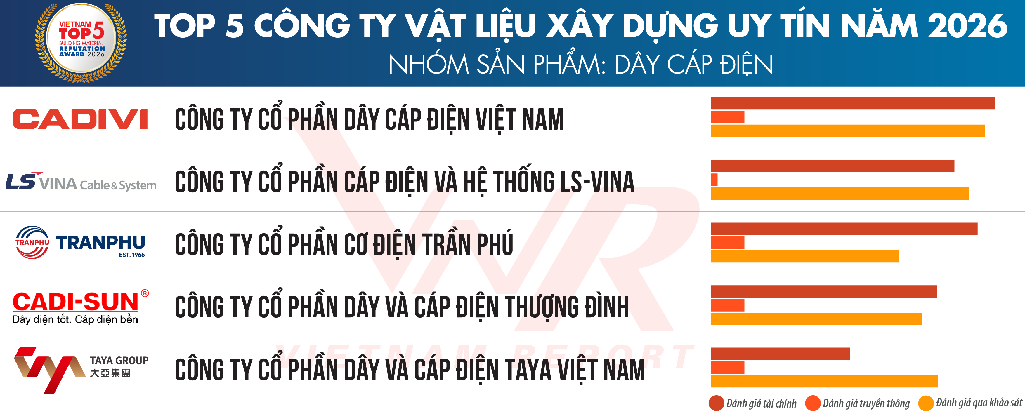 Danh sách 7: Top 5 Công ty Vật liệu xây dựng uy tín năm 2026 – Nhóm sản phẩm: Dây cáp điện