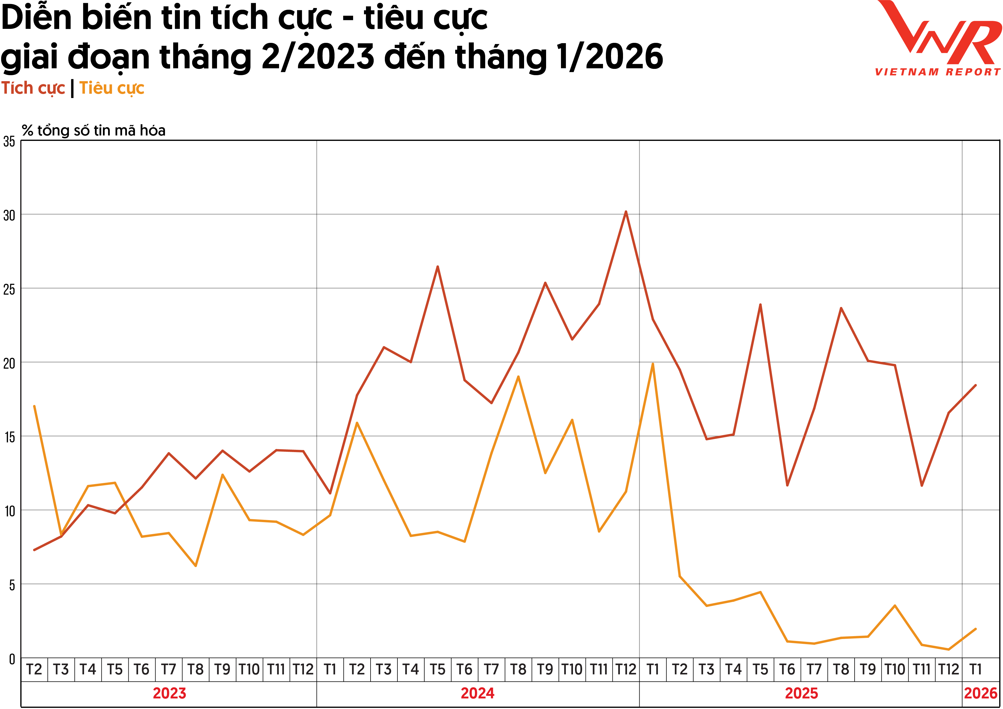 Nguồn: Vietnam Report, Dữ liệu Media Coding các doanh nghiệp bất động sản, tháng 2/2023 - 1/2026